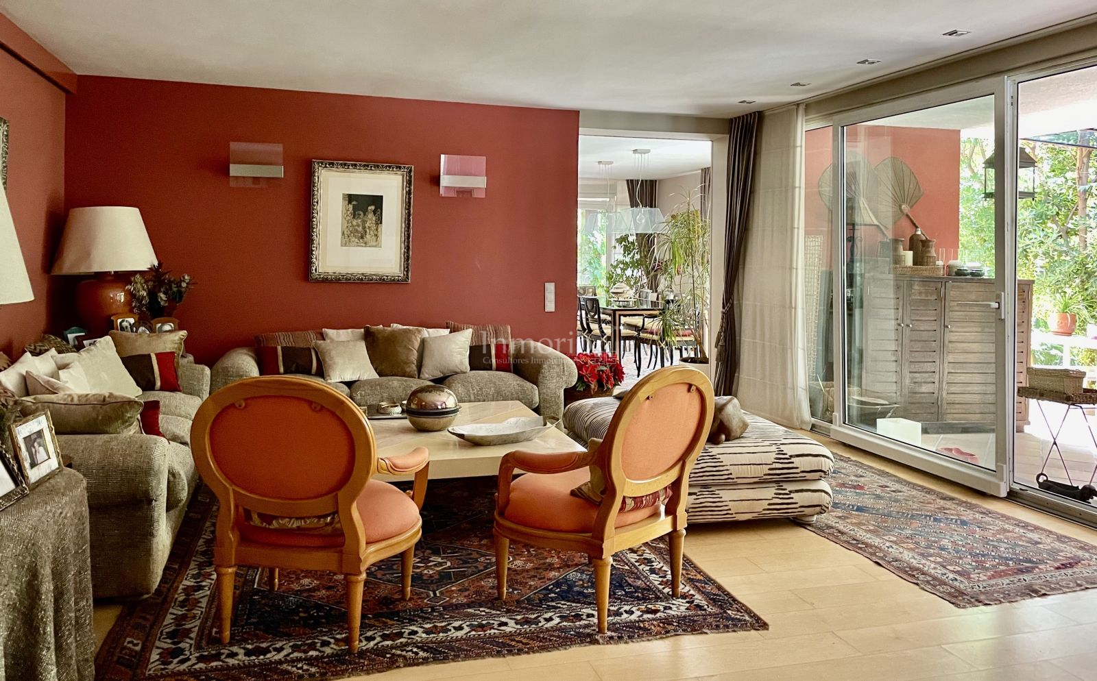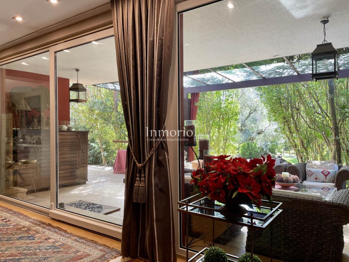 Planta baja, dispone de dos amplios salones, cuarto de estar y magnifico comedor independiente, estando todas estas estancias con acceso directo a un gran porche que ocupa todas las dependencias y que se comunica con un jardin de diseño con una exhuberante y hermosa vegetación.