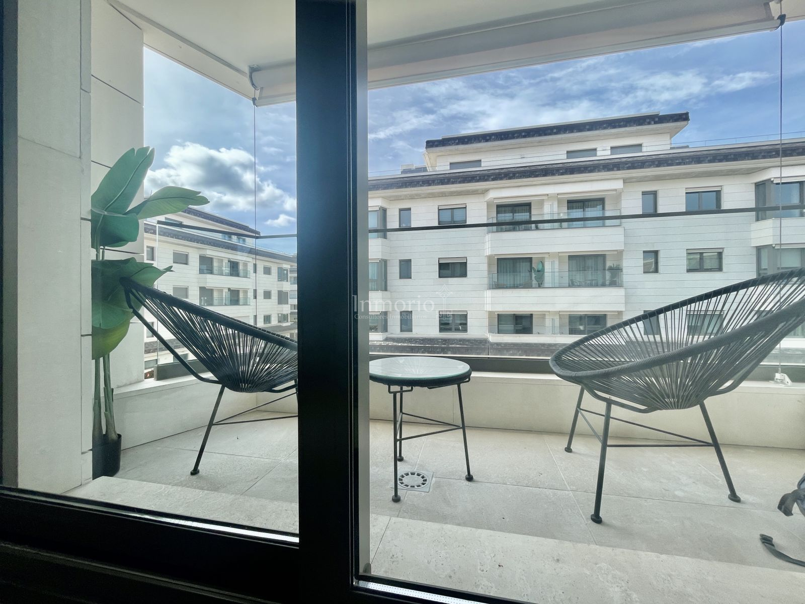 Dormitorio principal en suite con baño incorporado, y terraza con vistas al jardín de la zona comunitaria.