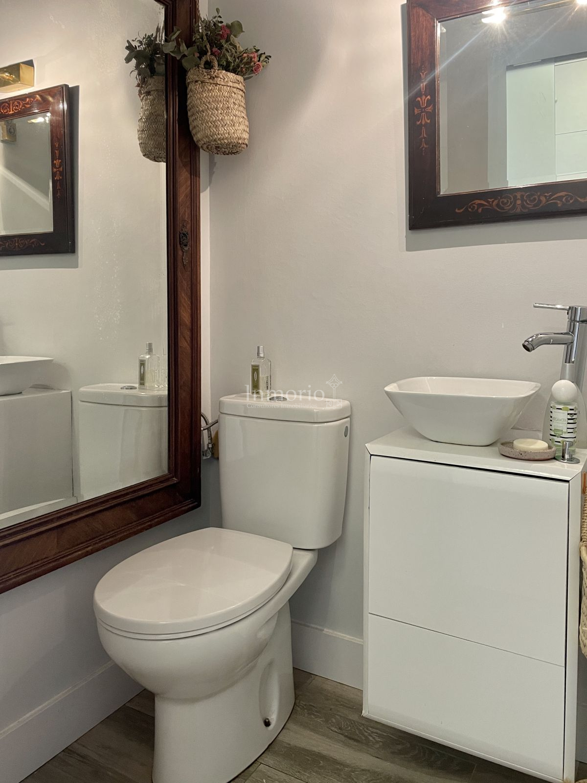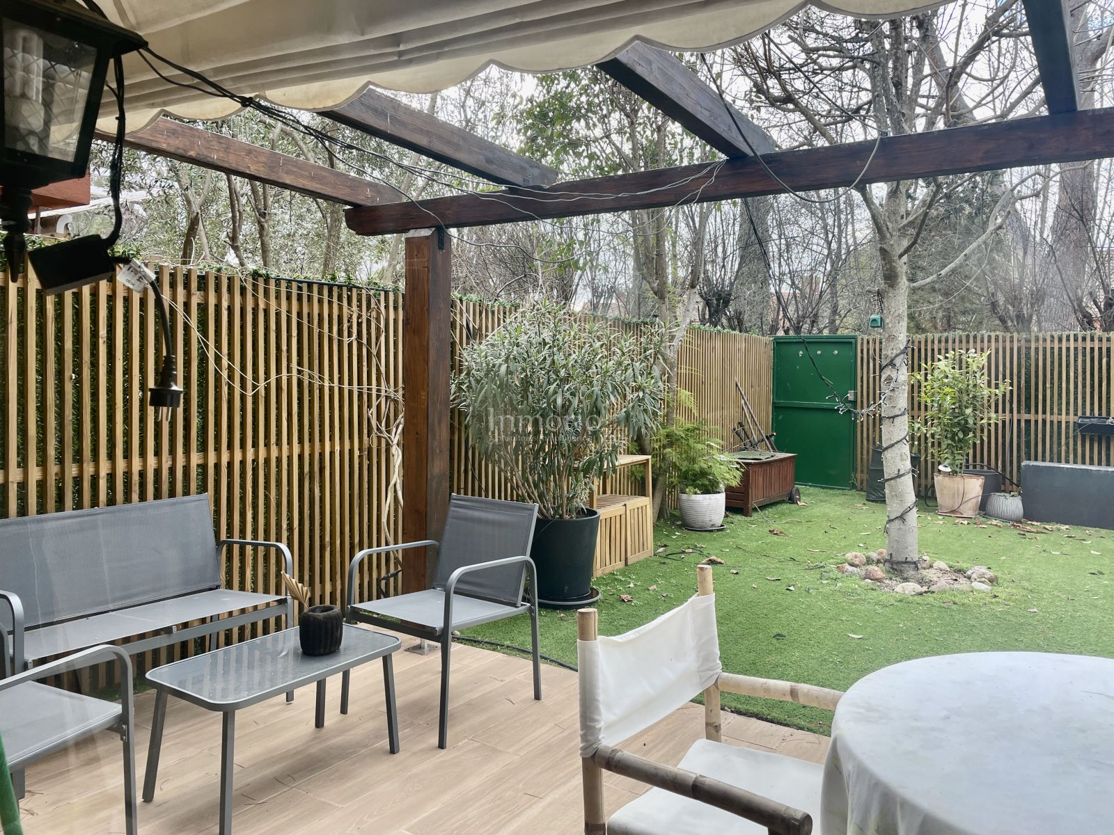 Consta de un amplio hall de entrada con dos grandes armarios, aseo de cortesía, cocina exterior reformada recientemente, salón comedor con chimenea, con salida directa a un agradable jardín privado, que conecta interiormente con las zonas comunes, piscina descubierta y zona de juegos infantil.